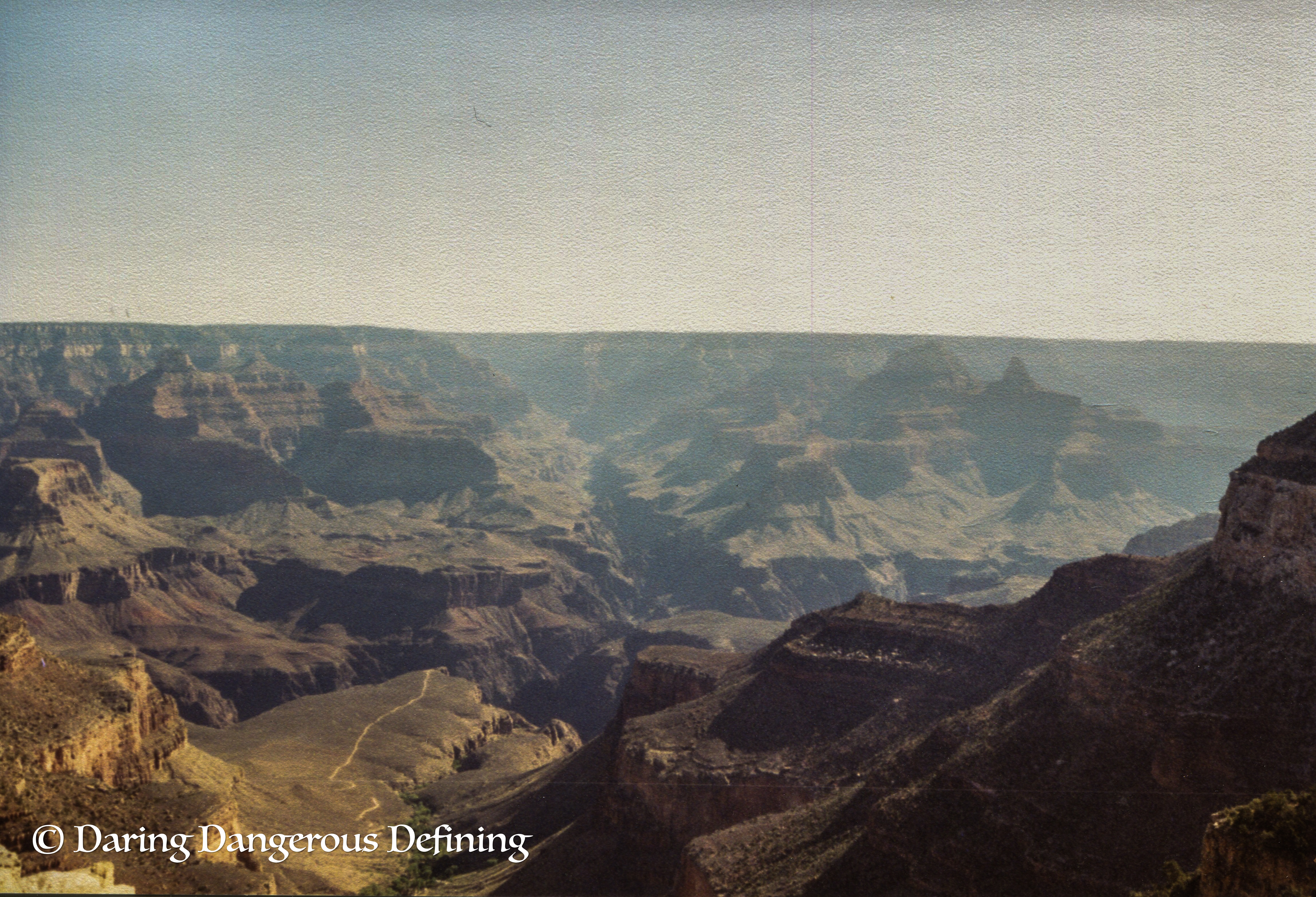 Alas, with the disappointment in my heart from having to bypass Mesa Verde National Park, we went on and made our way to the Four Corners where I placed one appendage in four states at once. After our brief foray to the Four Corners we drove to Grand Canyon National Park. I remember going through the ranger checkpoint at the entrance of the park and thinking that it wasn’t very impressive, it looked like a scrub forest, but we hadn’t seen the canyon yet. Our first stop was at the Desert View Watchtower. As a child I was excited to be able to climb up to the top of the tower. We saw the canyon, but I was not moved or concerned with the splendor that is the Grand Canyon. We then went to the Bright Angel Trail and walked partway into the canyon. There was a park ranger standing near a ledge and perched on it was a very large bird, the ranger was excitedly telling us that it was a California Condor the largest bird in North America and critically endangered, we were able to see it perched on a cliff close up and not far off in the distance in flight. Of all the things we saw in the park that day, seeing the California Condor was by far the memory that replays in my mind as if it was yesterday.