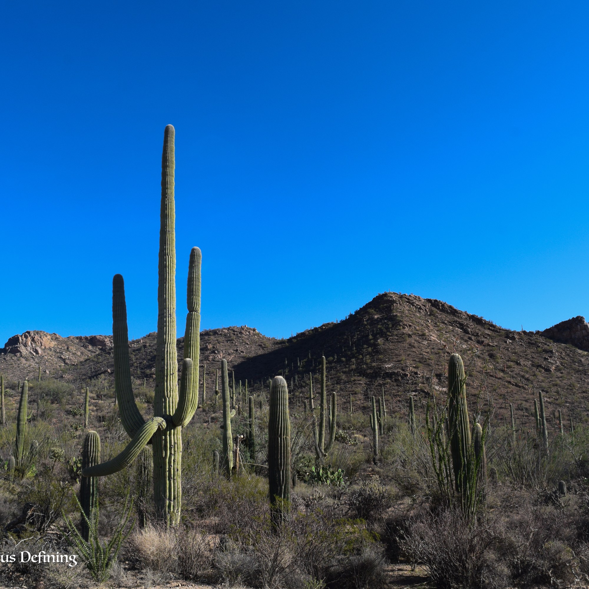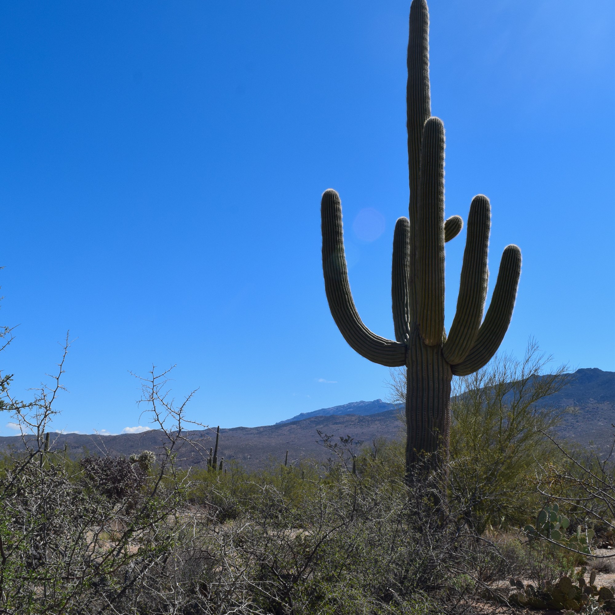 The first night in the campervan passed uneventfully and we were able to get up early the next morning to go to the east side of the park, which is on the opposite side of the city of Tucson. We started on the scenic loop on that side of the park and completed a short nature walk/hike through the Sonoran Desert and the Cacti Forest on the Mica View Trail. I was exceedingly careful not to get too close to any of the plants, still wary of any prickly pear cactus in my immediate vicinity.