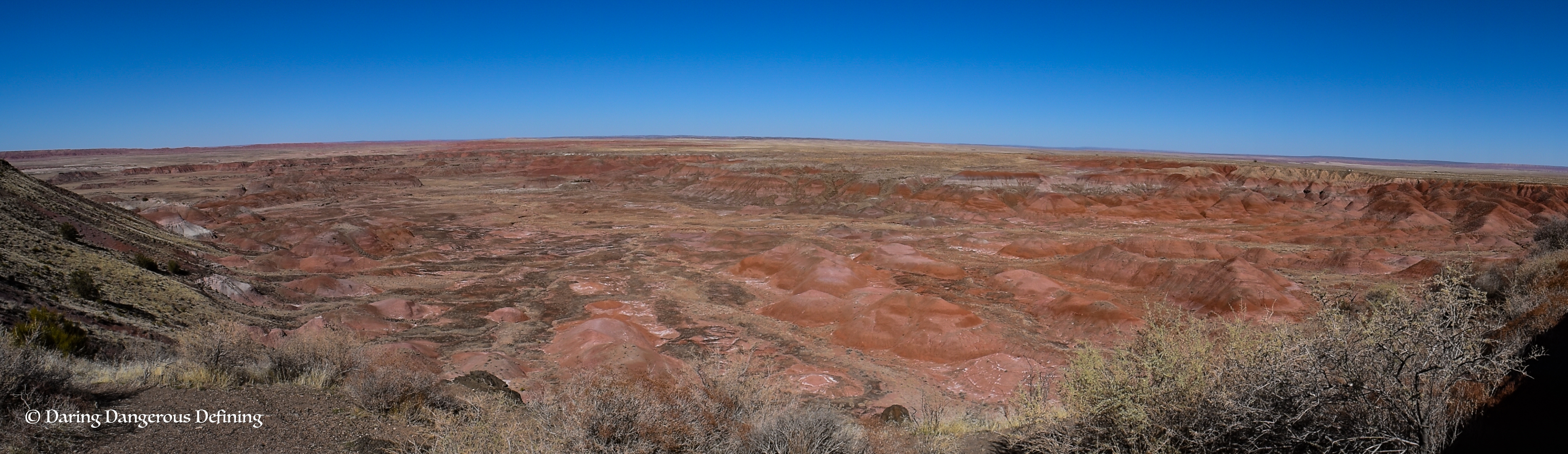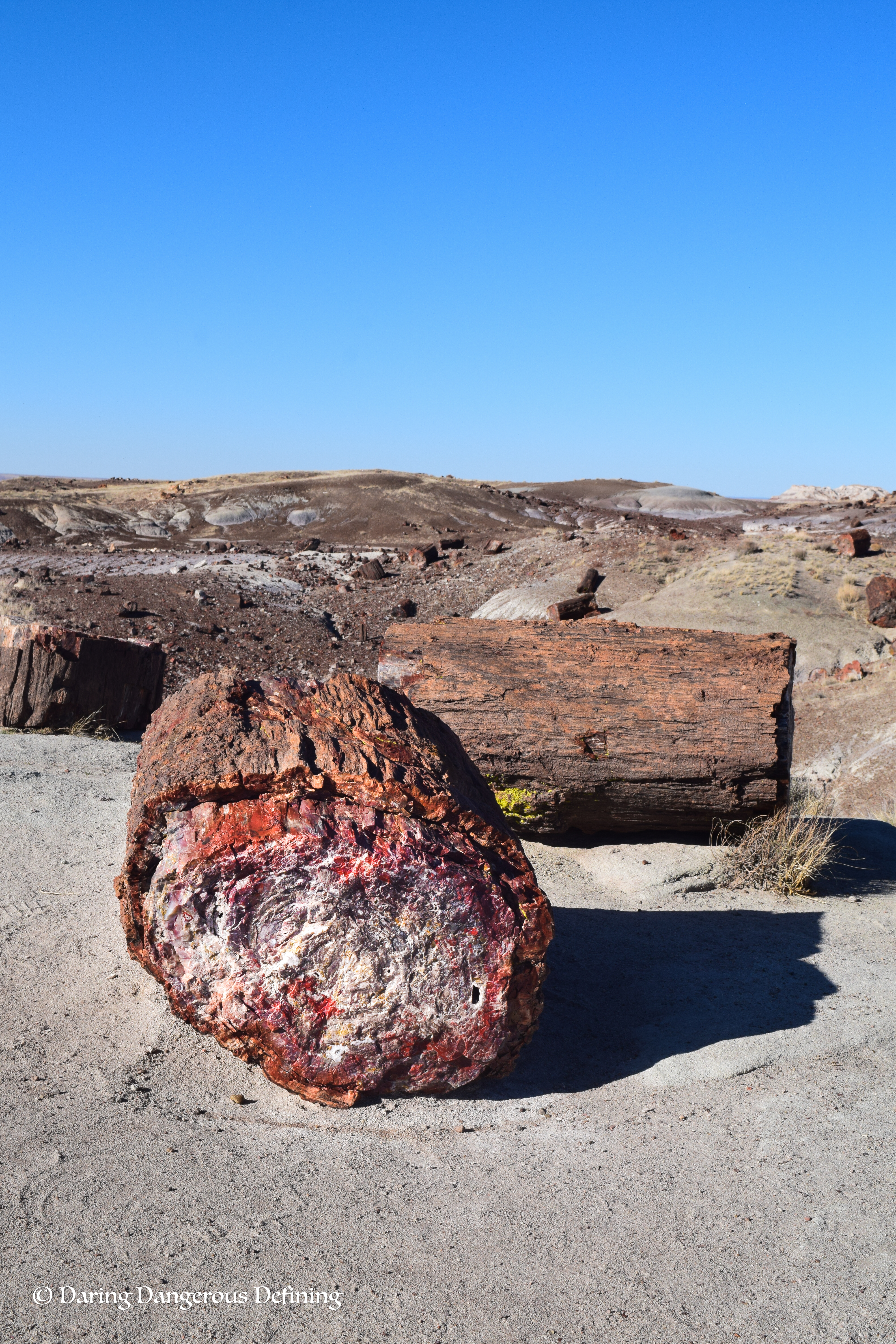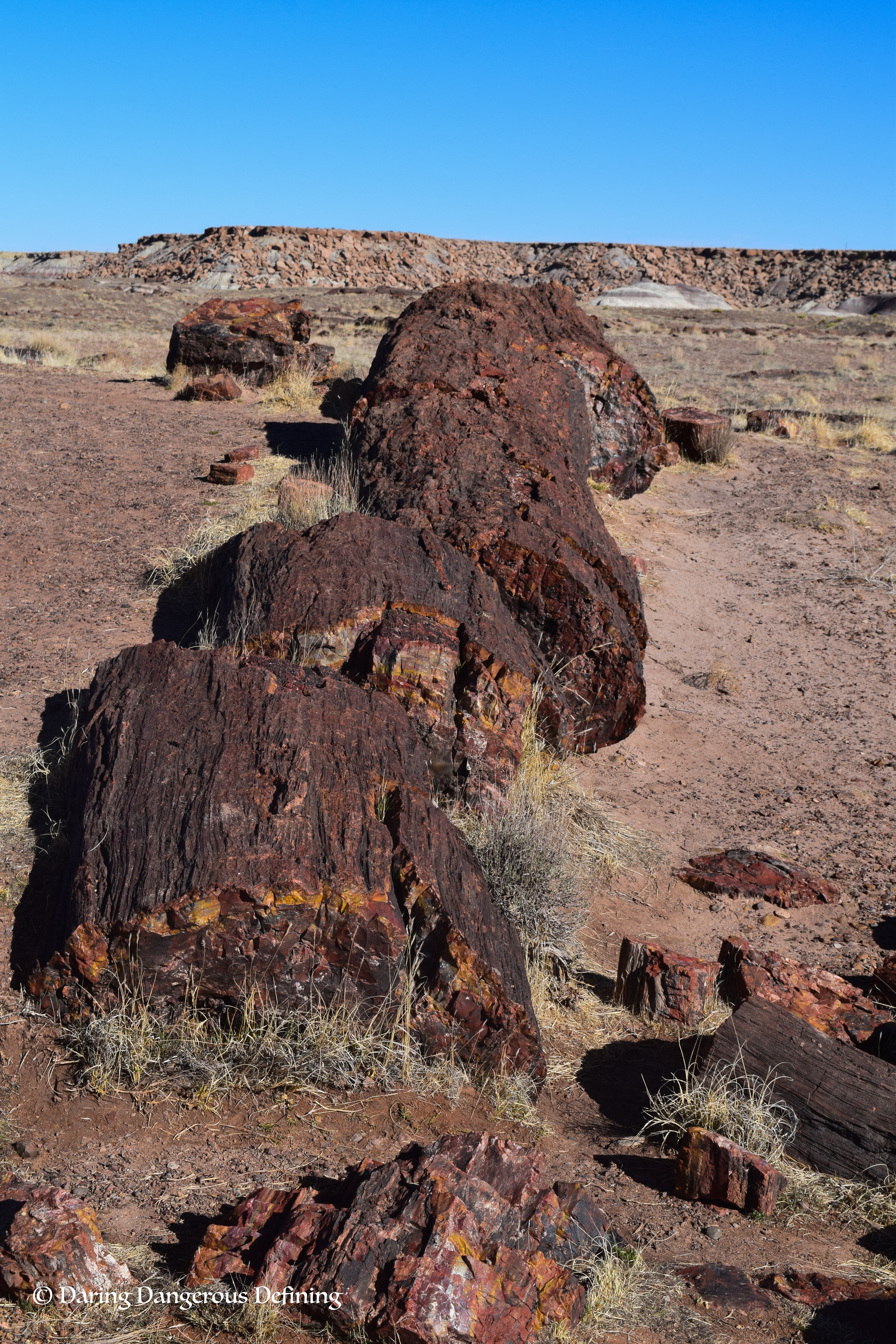 At the Painted Desert overlooks you can just sit and stare, the quiet of the desert below you and the wind rushing by. The idea of sitting for hours to take in the splendor of what’s before you, the red rock eroding into badlands and nothing but blue sky to the horizon, is not an absurd one. We rushed through some of the view points knowing that we’d be back to take everything in the next day when we could get to the park as early as it opened.