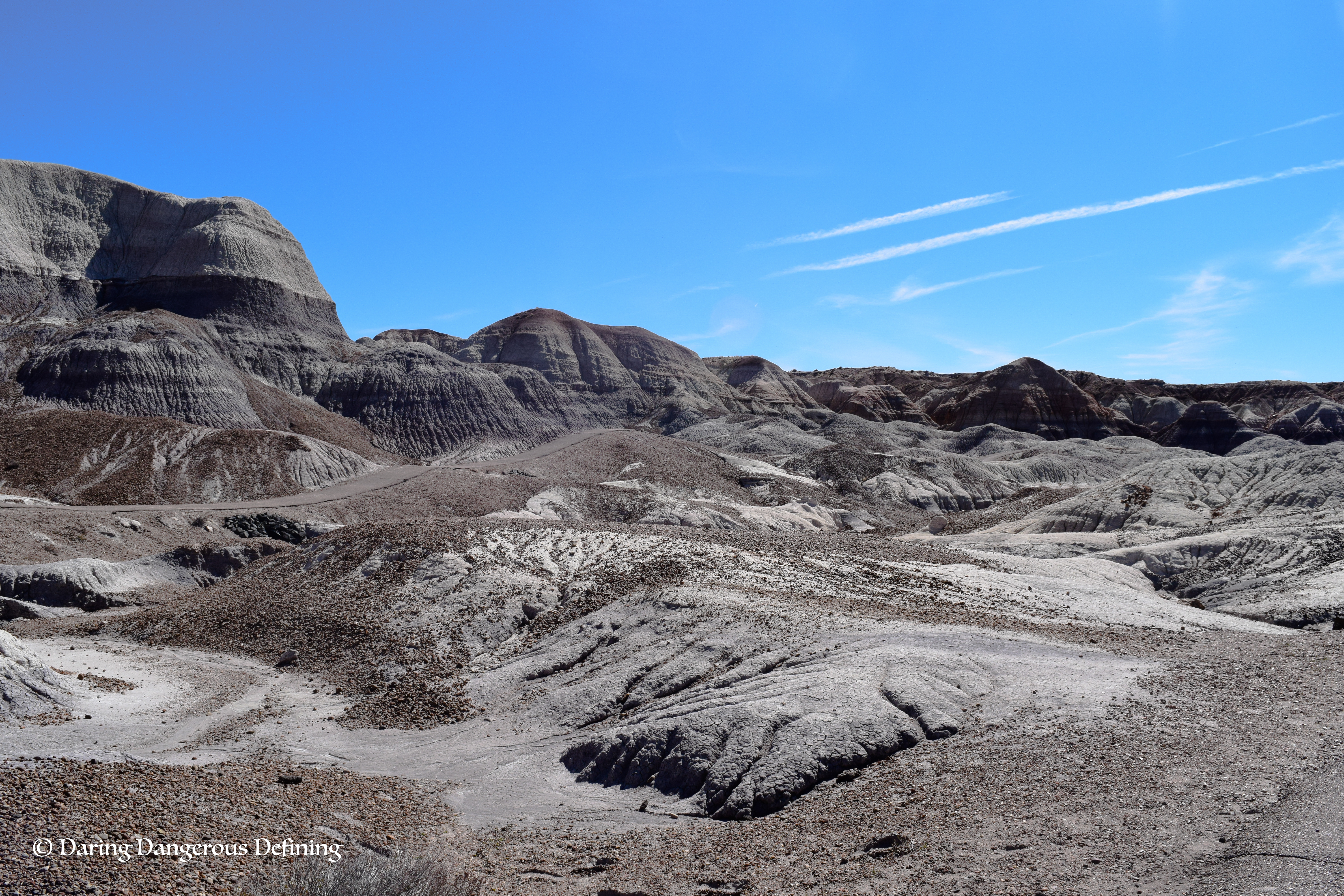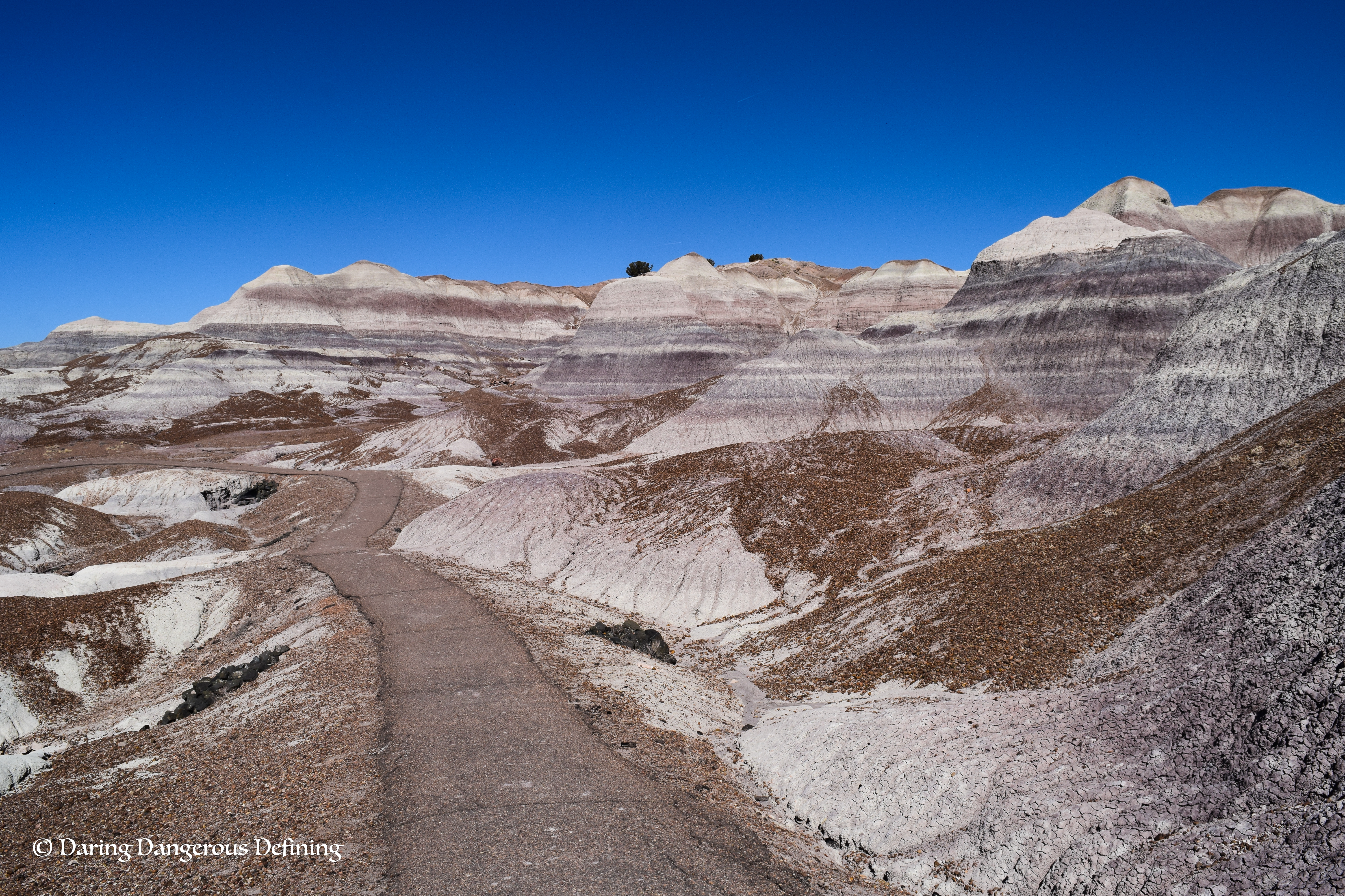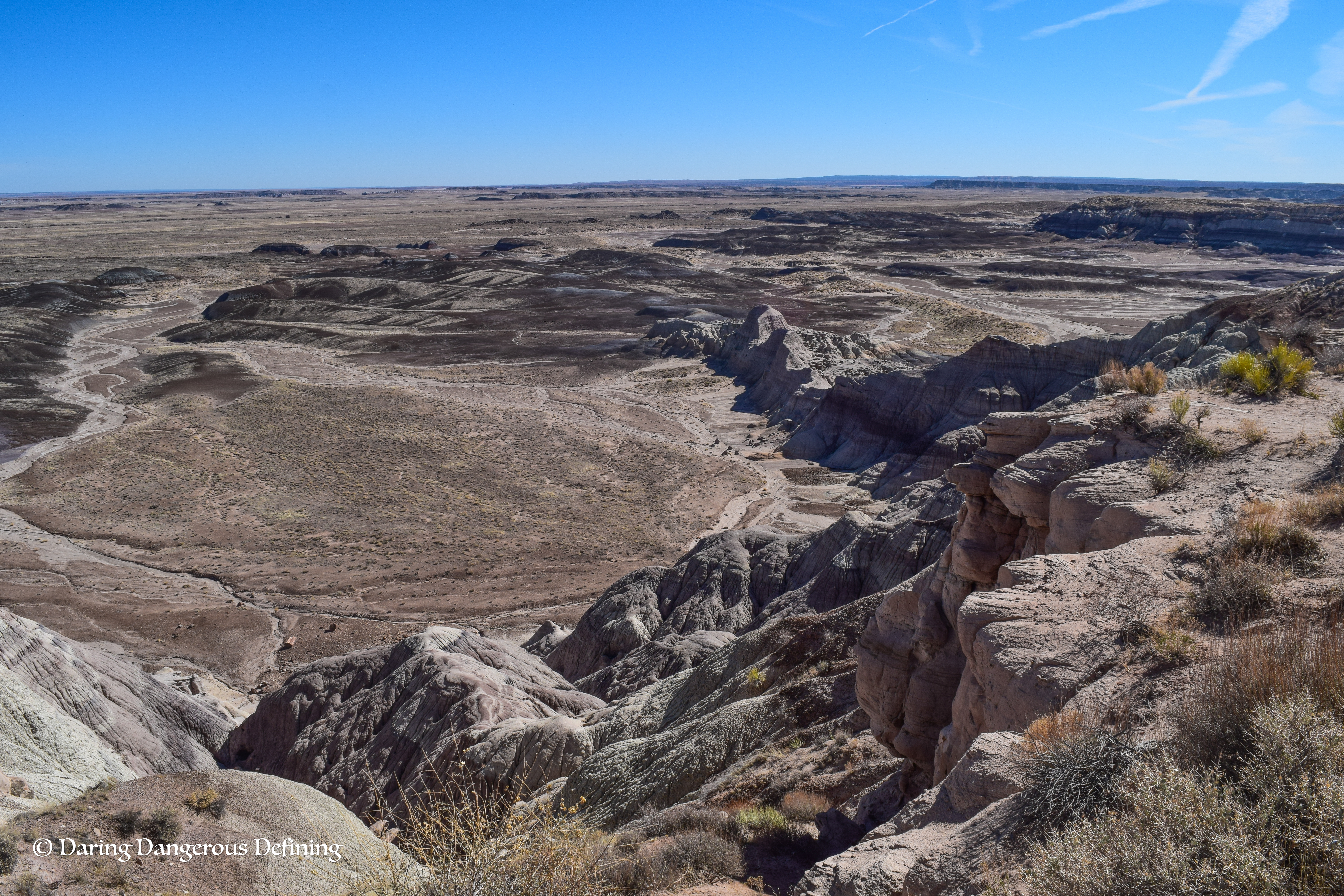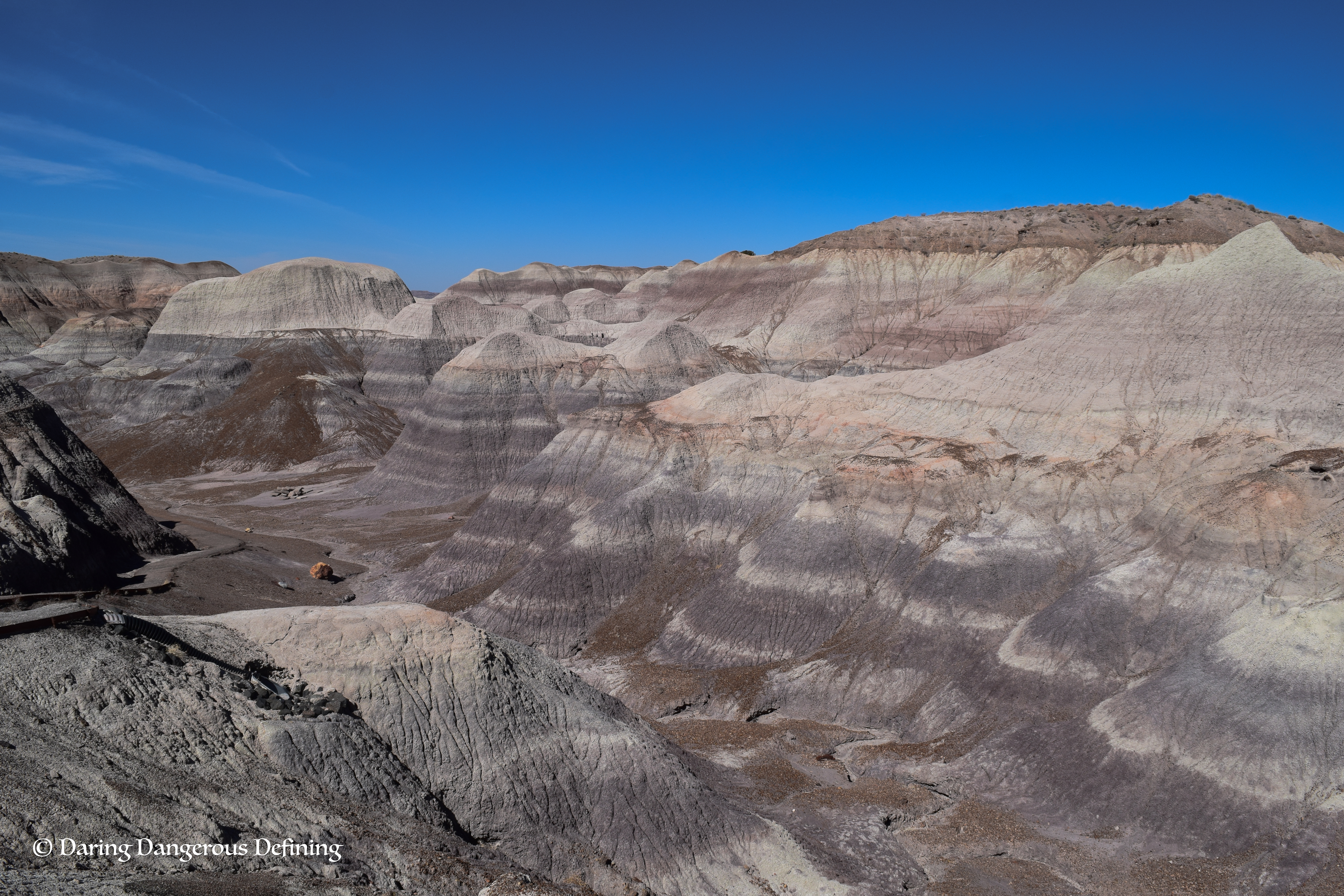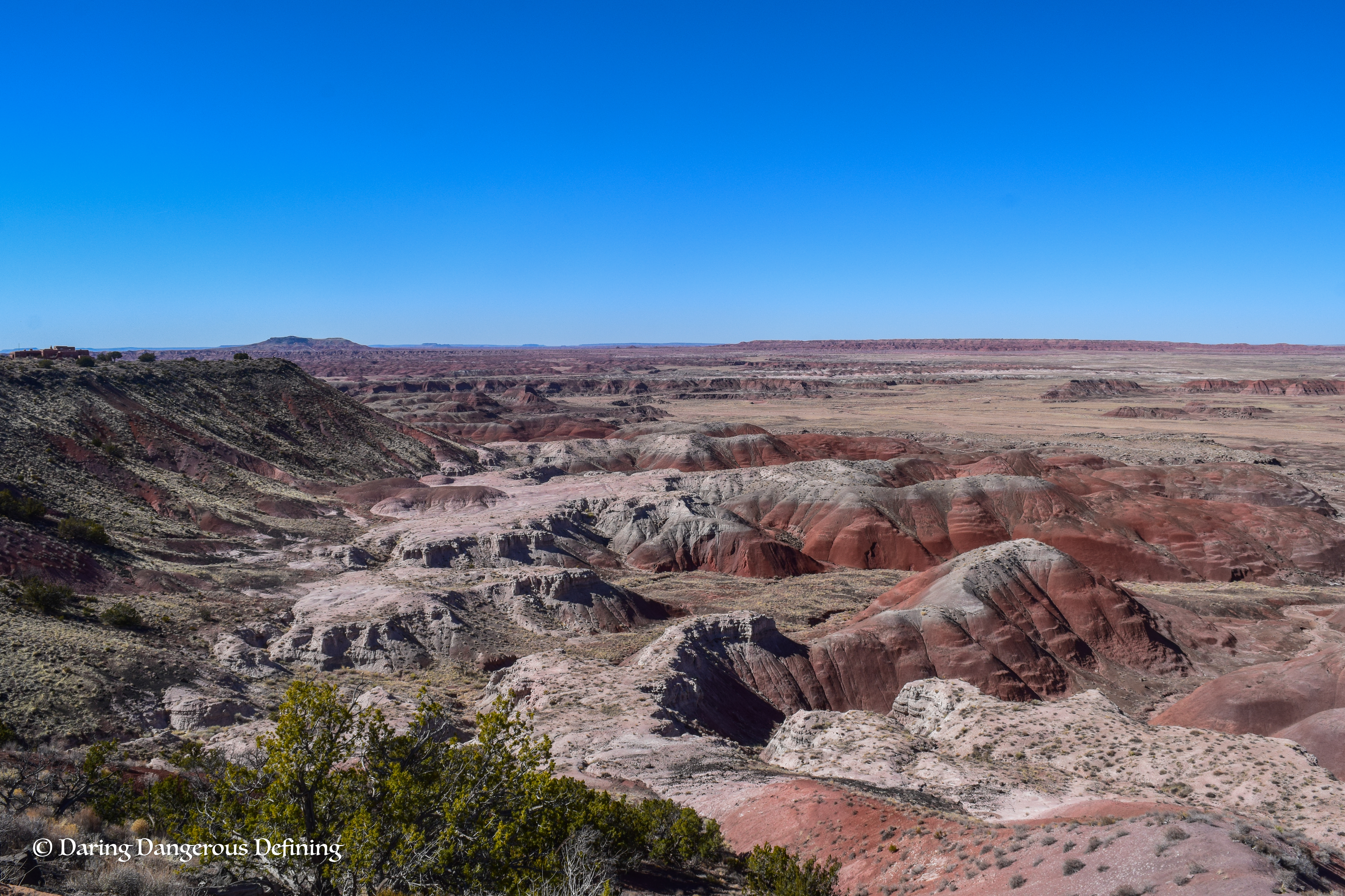 We arrived mid-afternoon and only had 2 hours to explore because the park was only open from 8AM-5PM. I’m not sure if this is a COVID specific time schedule to assist with physical distancing and maintenance of the park or if the park is normally only open those hours, unless you have a back country camping permit or special nighttime ranger program. We hurried through the entrance gate and made our way to some of the first overlooks in the northern part of the park nearest to the Painted Desert Inn.