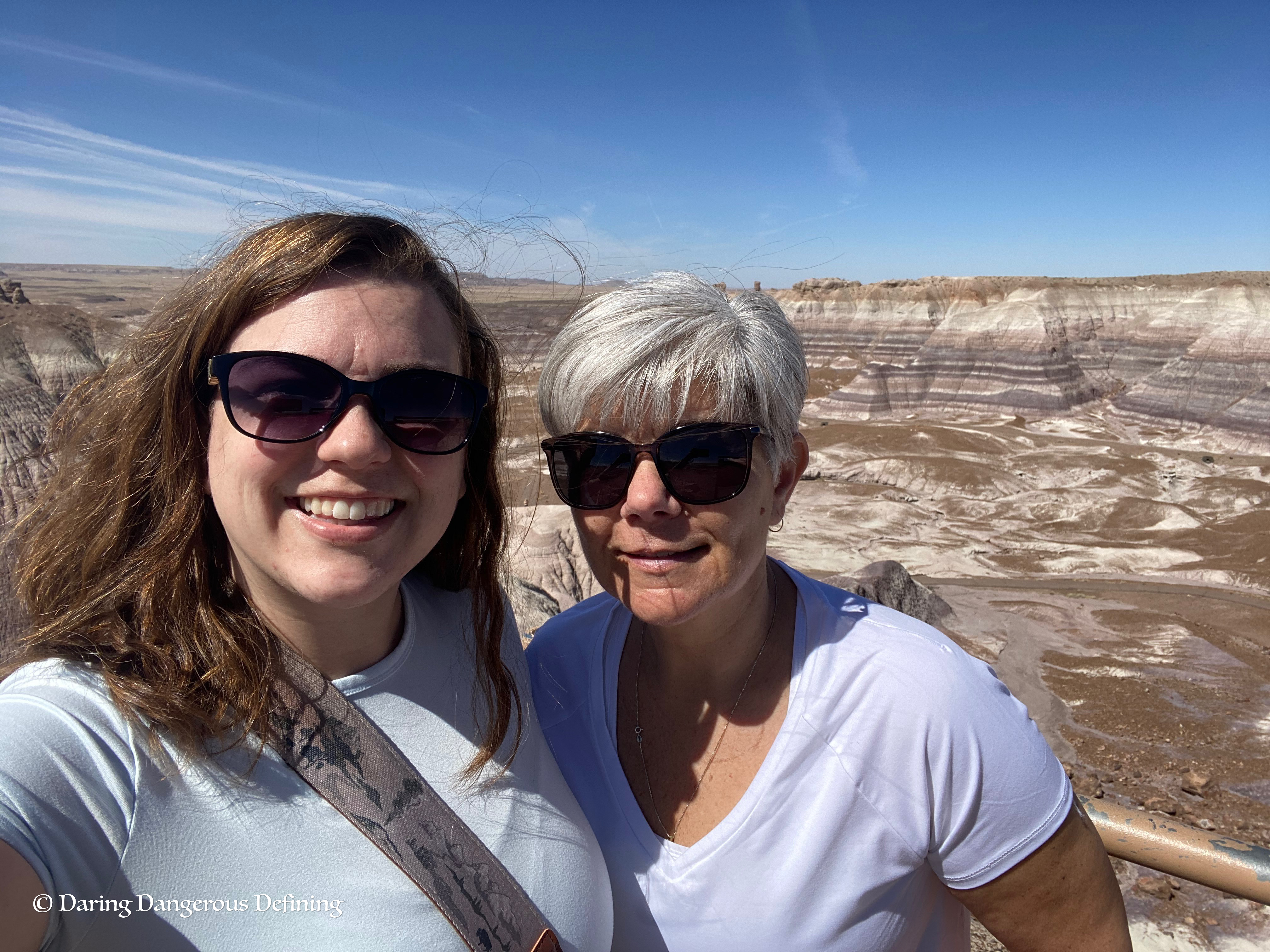 In the morning we got back to the park just after 8AM and went to the Rainbow Museum and did the Giant Logs trail. We then drove the Blue Mesa loop and did the short 1 mile hike to walk through the park’s unique badlands. Mom and I took a quick stop at Newspaper Rock and the Puerco Pueblo. Our final “hike” was to walk the half-mile rim trail from the Painted Desert Inn to the Painted Desert Overlook and then back again.