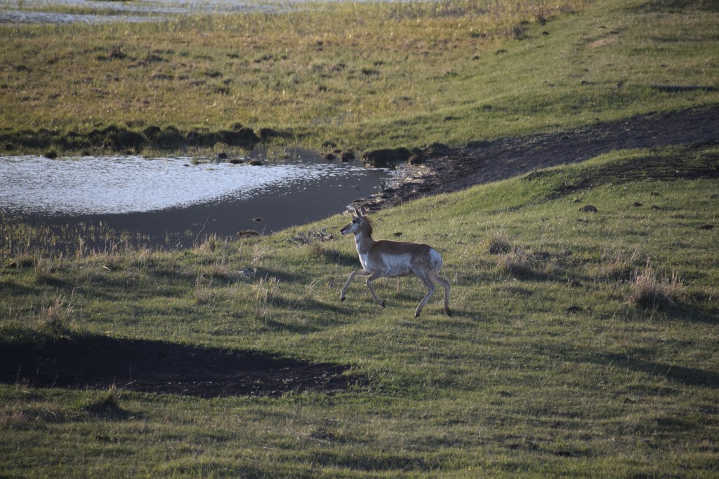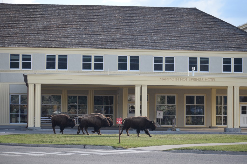 As I made my way into the National Park I stopped briefly at the Mammoth Hot Springs area, I didn’t really have much in mind for what I was going to do, but I thought I’d get out and take a look around. I had to stay very close to my rental though because as I looked towards the Mammoth Hot Springs Hotel there was a herd of bison running towards me (I mean, they were running towards a field, but it felt like they were running towards me specifically!). It was too early at that time for any of the park’s visitors centers or stores to be open, so I did what any one logical would do, and started to drive to Lamar Valley, because, wildlife!