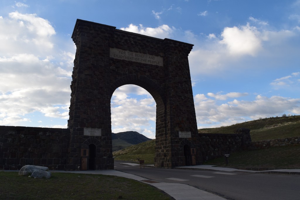 After checking in to my hotel in Gardiner I enjoyed my first night just getting ready for my day in the park. I knew I’d head into the park early, because of course I would! Early to rise and late to sleep whenever I’m in the National Parks. Early the next morning I woke up and prepared to enter the park, the first stop was the Roosevelt Arch just outside Yellowstone’s Northwest Entrance Station. And wouldn’t you know it, a deer was in the middle of the road directly under the arch, this sighting wouldn’t be the most exciting wildlife encounter of the day though!