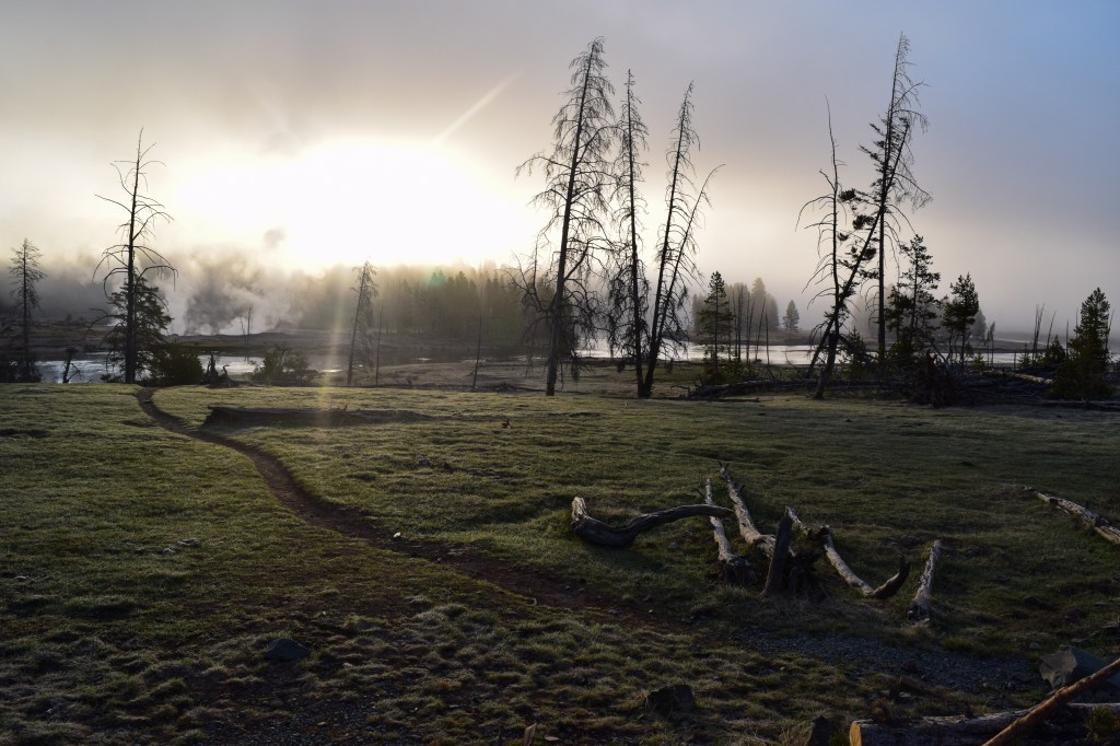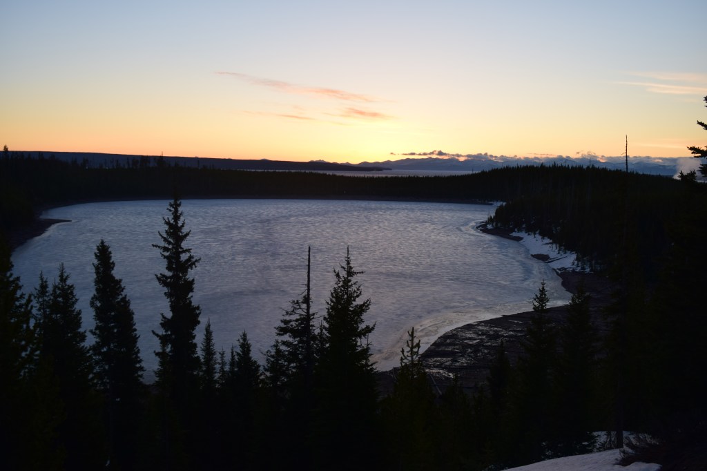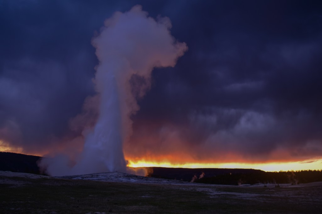 After this harrowing encounter with the bison I drove to Norris Geyser Basin to view the thermal features. The next day was spent in the Old Faithful area and then onto Lake Yellowstone, Hayden Valley, Grand Canyon of the Yellowstone, and the features on that side of the park loop road. That evening I circled back to Old Faithful and decided that, because I had ample time, I was going to get dinner from the lodge and then sit out on the benches in from of the parks iconic geyser and enjoy my meal. This was one of the first times I had a conversation with another visitor in the park. Aside from my check in experiences and brief conversations with park staff, I hadn’t had a conversation with another person in 3 days at that point. I met a lovely person who was traveling from California to Minnesota to visit her sister and had never been to Yellowstone and figured since she was going to be driving nearby she needed to stop to see Old Faithful. We spoke about our experiences in the park and I told her some of my favorite spots she might be able to stop on her way through the park. Then it was sunset and Old Faithful made its presence known and I got some of my favorite sunset photos!