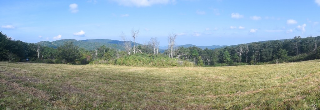 The next morning it was time to go to the Nantahala National Forest to stake out our spot to wait for the eclipse. We left very early from the park for the 2PM (ish) totality time. When we entered the National Forest we stopped at an information post with a map and I picked a hiking area called Hooper Bald – there was bathroom in the parking area and a bald on a mountain is an area void of trees, so I thought that might be the best location. When we pulled into the parking area it was already overly full, so we had to park alongside the roadway on the way to the trailhead, but we were able to wedge ourselves within the parking area! Luckily we got there when we did because very soon after we arrived the Forest Rangers put up a sign indicating parking was full and other hikers/visitors had to park even further away.