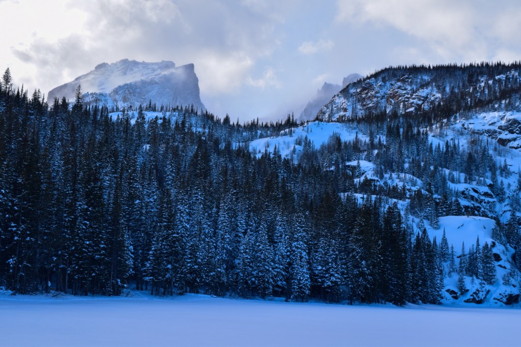 Going to the mountains in the winter with snow covered roadways, was certainly hazardous – I think it goes without saying that I was unprepared for the travel situation. It had been years since I drove consistently in snow and ice and I was quite uncomfortable driving, but I did it! I entered Rocky Mountain National Park through the Estes Park Entrance and drove partway up a mountain, only to find that at the first parking lot the road was closed to further traffic due to snow. I drove to the Bear Lake area of the park and briefly got out of the car to walk to the absolutely frozen and snow covered lake, got some pictures and then got the heck out! (I don’t do well in the cold.)